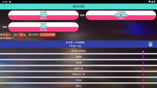 4、根据你添加的起始站点,点击开始查询路线,就能获得最佳地铁换乘方案。
