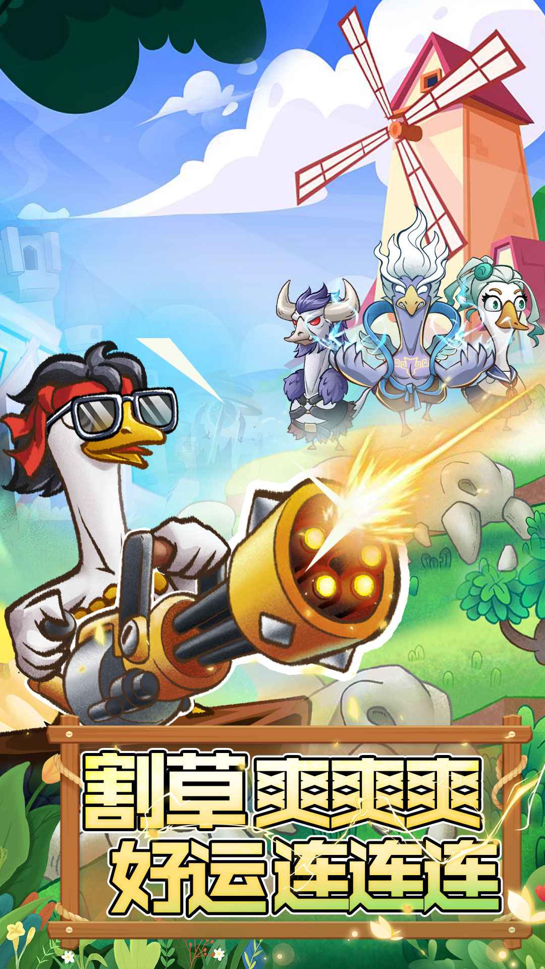 1、割草爽爽爽,好运连连连。