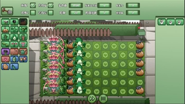 4.拖动左侧植物至战场格子,合理搭配各类植物构建防线。