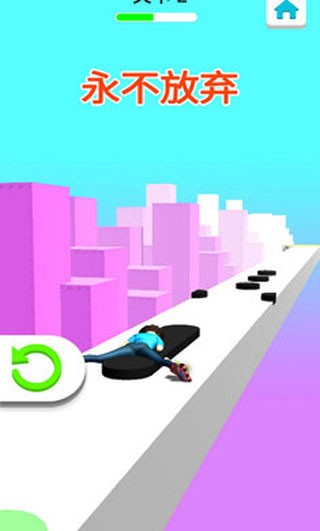 4.采用简约清爽的卡通画风,有效减轻了长时间游戏的视觉疲劳。配合流畅的跑酷节奏和动感的音效,为玩家营造了一个轻松愉快却又紧张刺激的空中轮滑世界。