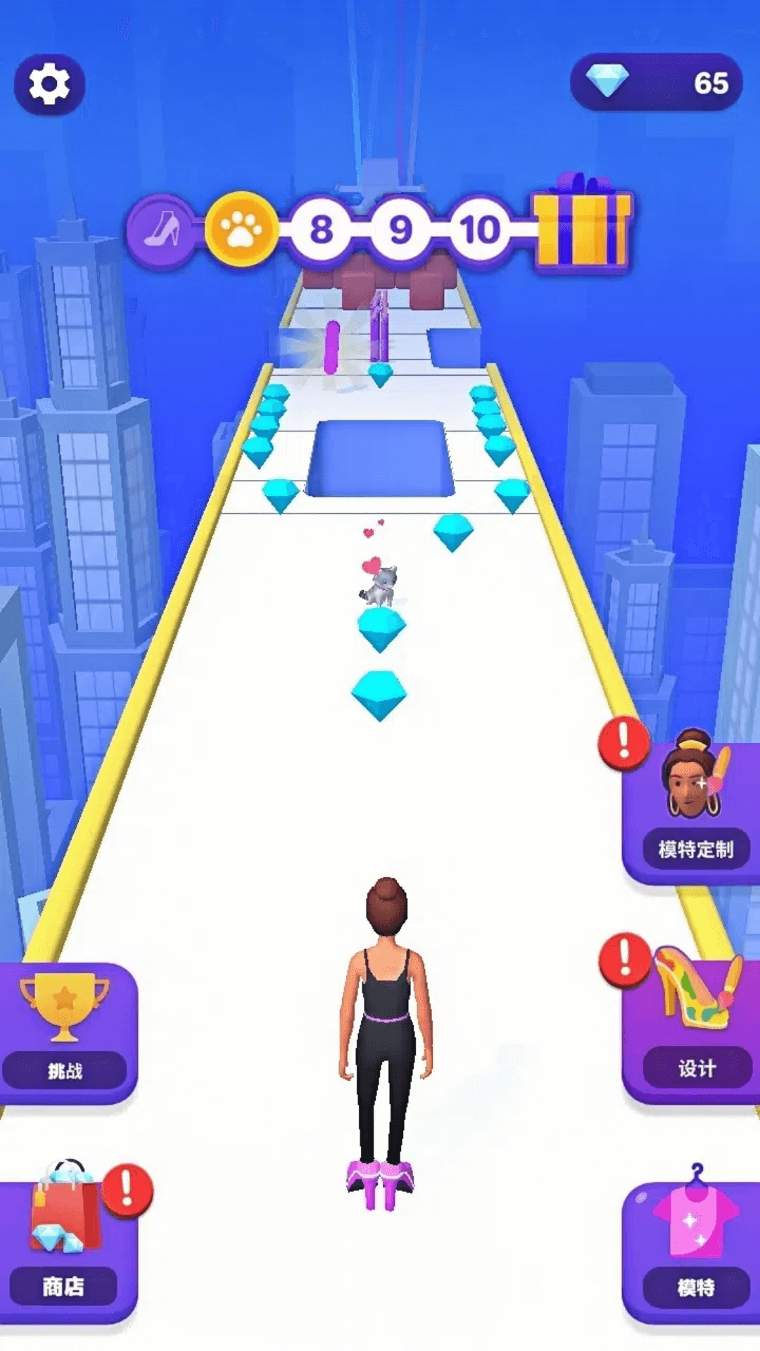 1.动态高度系统:每收集一只高跟鞋,角色鞋跟高度递增,提升跳跃能力与视觉表现,但同步增加失误代价。