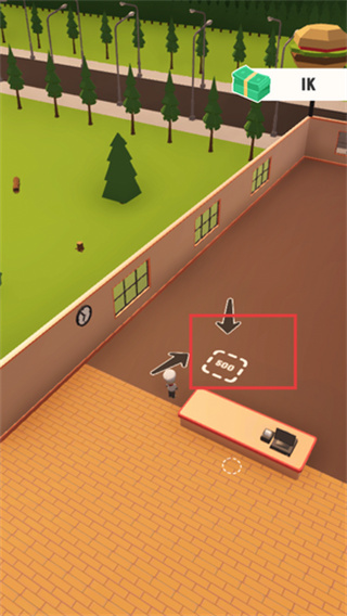 1、进入游戏后跟随地面箭头指引移动角色,到达金色钱袋标记处拾取初始启动资金,这笔资金将用于后续的店铺装修和设备采购。