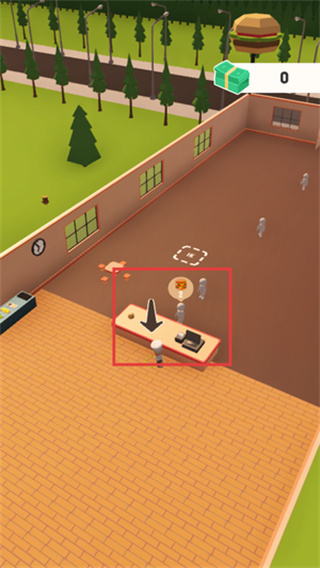 4、将成品汉堡拖拽至服务台发光区域,及时满足顾客需求可获得金币奖励,累积足够收益即可解锁新的店铺装饰和菜品种类。
