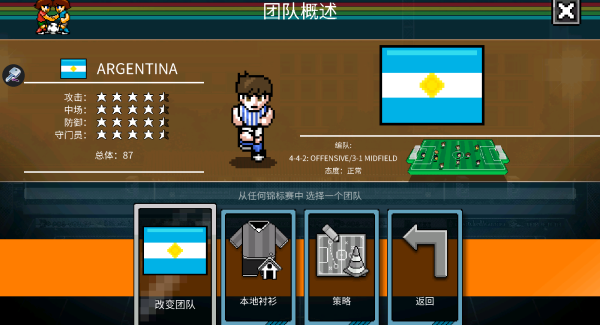 像素足球杯游戏一款充满怀旧风格的像素动作足球竞技游戏,玩家可以在这个独特的像素世界中体验激动人心的足球比赛。游戏提供多种模式,包括单人挑战和多人对战,玩家可以选择不同的球队,参与各种精彩的比赛。简单易上手的操作让每个玩家都能迅速融入游戏,尽情施展自己的足球技巧。