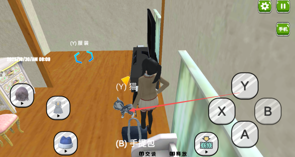 3、与场景中的小猫互动时按下Y键,可选择让它跟随或进行其他互动。
