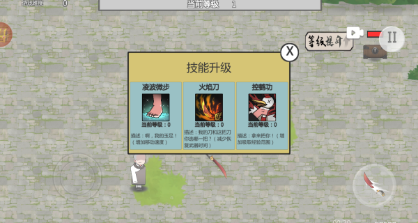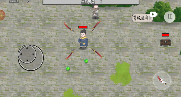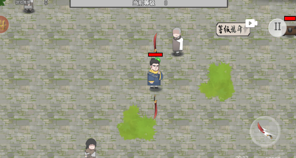2、初始等级为0级,通过虚拟摇杆操控英雄移动并攻击周围敌人。