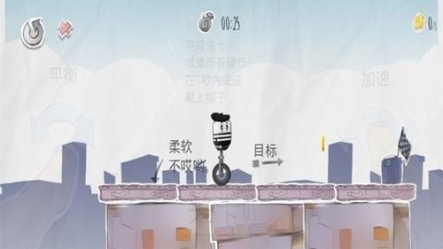 2、通过滑动屏幕左右方向,调整独轮车的重心,让车身在平台上保持平衡。