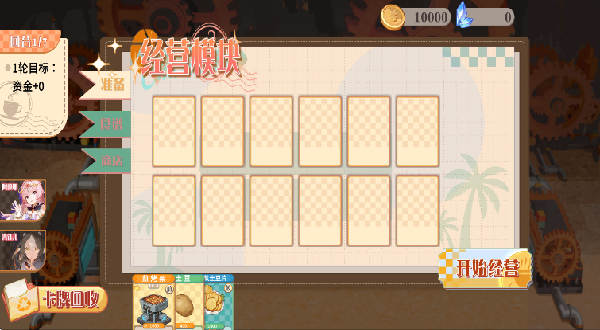 1、玩家在预制准备阶段可以购买不同类型的卡牌,这些卡牌代表食材、食谱和厨具产线。