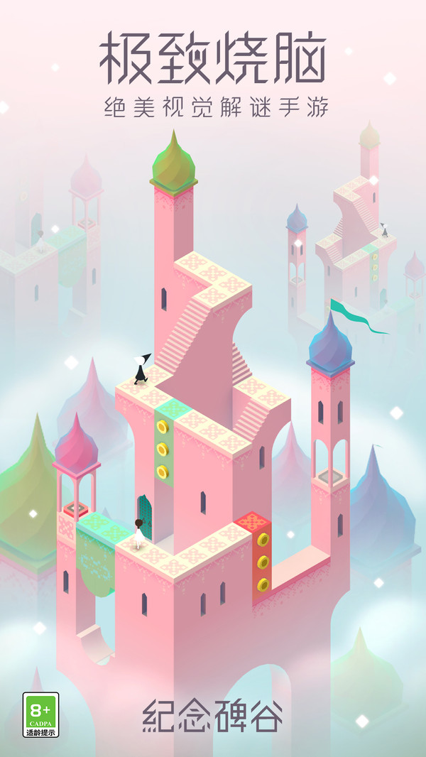 《纪念碑谷》是一款探索解谜游戏。玩家操作公主艾达在看似不可能存在的迷宫中开始一段归还神圣几何的救赎之旅。垂直塔楼,貌似无路可走的楼梯,却处处都暗藏着机关。当你走到一处感觉无路可走时,迷宫就会开始这种神奇的变化。