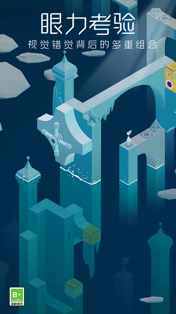 1、纪念碑谷采用3D技术结合感知觉原理,将世界各地的雄伟宫殿庙宇建筑都以独一无二的方式展现给玩家。