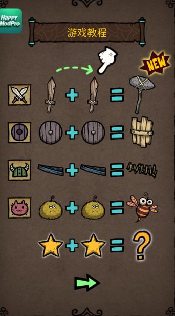 很精彩有趣的放置休闲游戏,整个游戏的画面还是很可爱的,玩法更加的直接去直接合成就可以了,用各种的装备来挑战这里的怪物吧,有着近百种的装备可以让你去收集呢,不断的去战斗来得到金币和装备吧。游戏画面简约,游戏采用卡通简约的游戏风格进行展现,玩家在游戏中作为勇者进行冒险,并且玩家可以通过合成获取新的更多的武器种类。