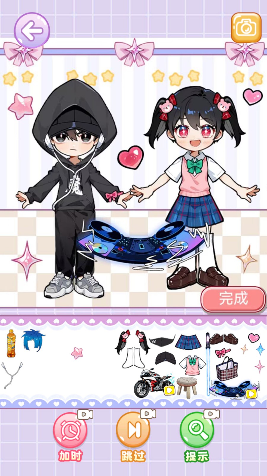 4、进入第二关后可为角色个性化搭配五官与服装,完成设计后提交作品。