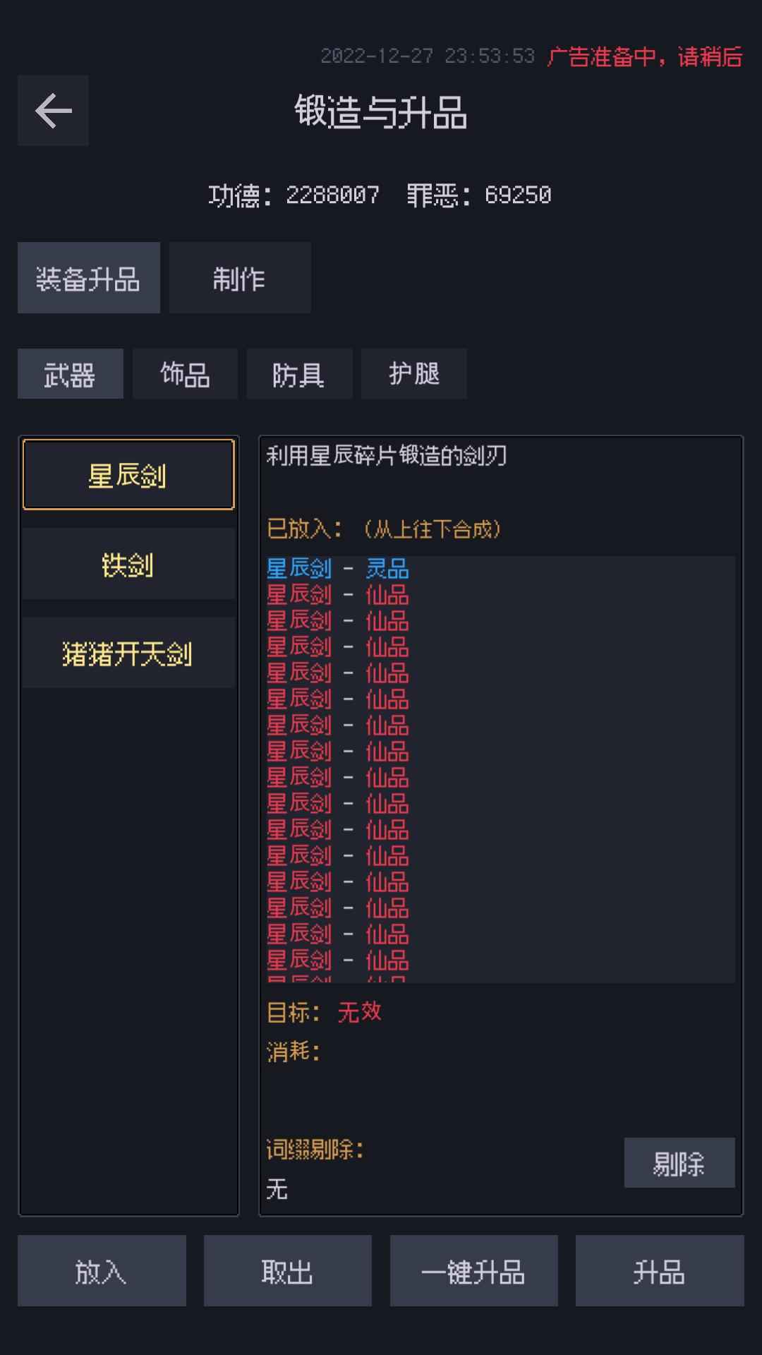 3、装备方面,铁甲铁护腿可以少量刷取,可以多刷铁剑。在首页可以将装备锻造升品,相同品质的可以二合一升级。白色升级到绿色会随机赋予词条,之后升级的词条是从作为合成材料的装备中抽取。铁剑的词条以加速最好,护腿词条以复苏(护盾回复速度+9)最好,防具的词条都比较一般。