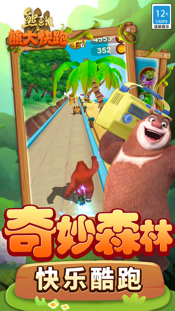 游戏以国产超人气动画《熊出没》为原作,100%真实再现动漫人物形象,再现经典场景,聪明机智的熊大、可爱耿直的熊二、诡计多端的光头在酷的途中和你一起开心没有界限。