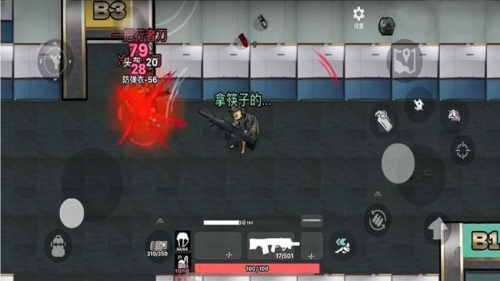 2、收集到基本作战物资后便可主动寻找敌人,利用枪法技巧进行对抗并夺取其资源装备壮大自己实力。
