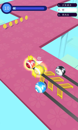 1、清新简约的动漫卡通画风,简单易上手的游戏操作,掌握驾驶技巧,让小球不断加速,夺取最后的冠军荣耀。