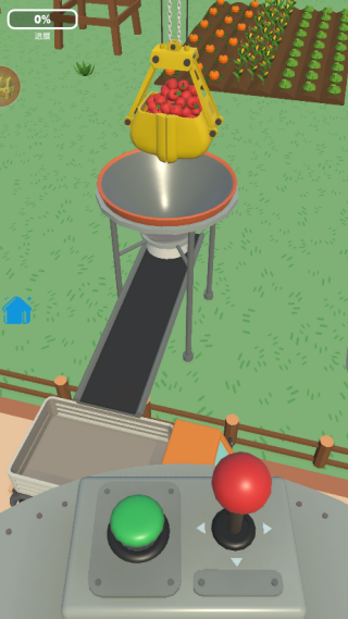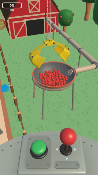 2、先种植一批当季苹果,熟悉果树生长周期,待成熟后操作摇杆控制吊车移动,点击 “抓取” 按钮将苹果放到运输车上,完成首次采摘。