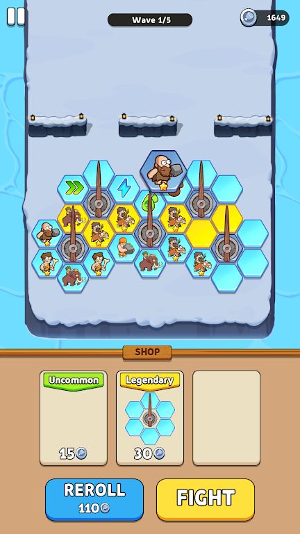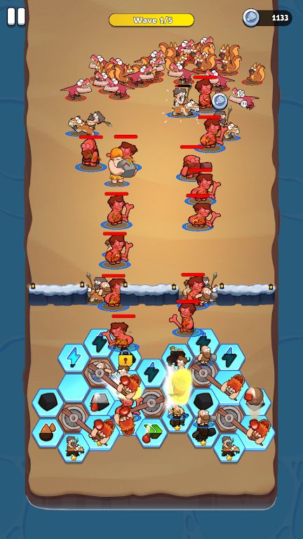 3、搭配近战远程及强大原始人组成不同战斗队伍,根据战场情况灵活调整出战阵容。