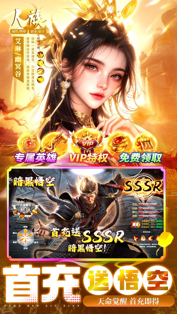 4、送满V:闯关免费升至满级VIP,尊享VIP1-VIP10特权和VIP等级礼包。