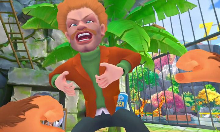 2、游戏提供物理驱动的沉浸式交互系统,玩家可攀爬、投掷香蕉,甚至悄悄夺走游客手中的物品。