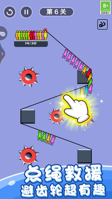 2、仔细观察每个关卡的地形障碍与机关分布,确保小人能够全部沿着绳子安全下落。