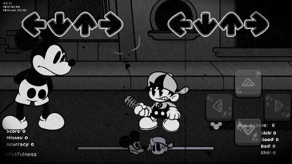 BF(男友):作为模组里极为关键的另一角色,他是玩家的伙伴兼盟友。BF邀请处于沮丧状态的米奇展开说唱对决,还尝试在游戏里助力玩家击败米老鼠。其形象设计简约大气,独具个性与魅力。