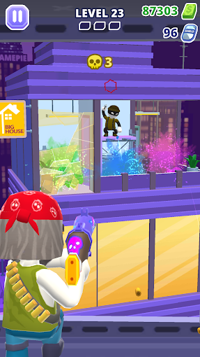 1、射杀身后无尽的追捕者,帮助人质逃脱。使用炸药和其他游戏内物品消灭多个敌人,或依靠精妙的射击尽可能多地消灭坏人。向敌人发起猛烈攻击,但务必注意不要误伤人质。