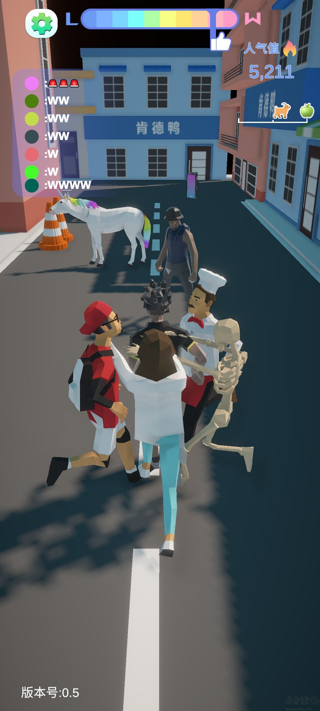2、将操控甲亢哥在保镖的护送下穿梭于街头巷尾,途中既要躲避热情粉丝的围堵,还要通过各种互动积攒人气,最终达成目标;