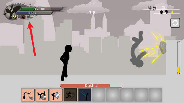 5、左上角可以看到自己的血量,归零后就会根据得分来获得奖励。