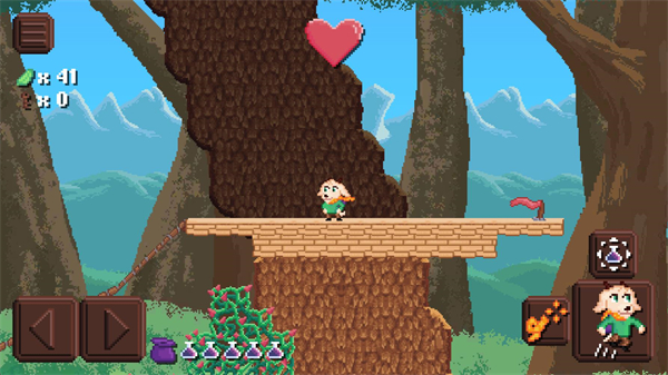 3、游戏左边控制角色的前进,右边是跳跃、使用绳索和投出药瓶的按钮。