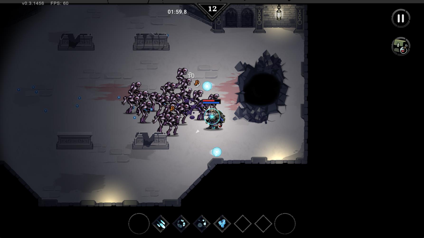 4、正式开始后滑动屏幕可以控制角色移动,角色会自动攻击出现的怪物。
