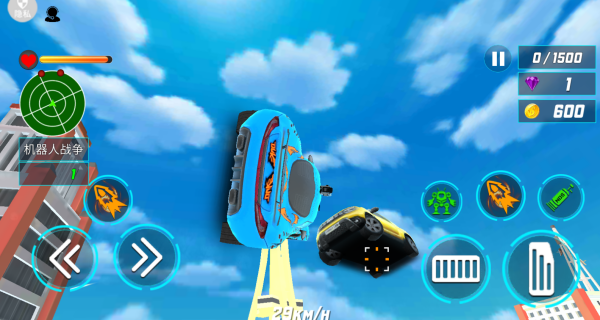 3、点击变形按钮可切换机甲形态,车辆形态适合快速转移,人形形态利于正面交战。