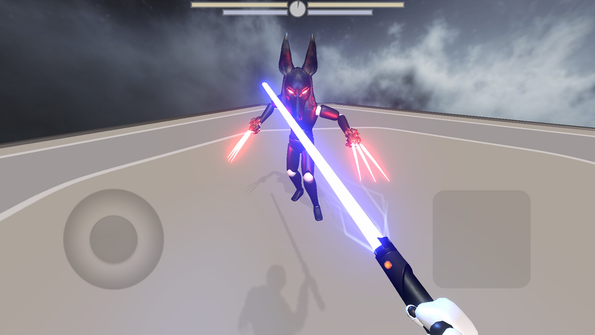 2、通过新手教程学习基础操作,向上滑动屏幕可发动激光剑劈砍攻击。
