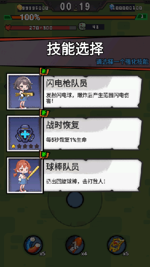 2. 战斗中通过击败僵尸获得的经验值可以提升角色等级,每提升五级就能从三个随机强化的天赋中选择其一进行学习。