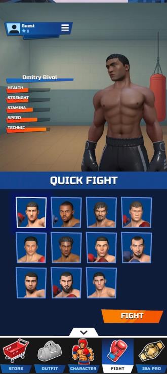 IBA拳击这是一款动作格斗类游戏,不断的训练你的角色来提升自己的身体素质,让你在战斗中获取更大的优势,游戏里给你拳拳到肉的打击感哦,多个不同的角色可以选择哦,带给你最沉浸式的格斗体验哦,游戏适合各个年龄段的玩家哦老少皆宜哦,喜欢的快来下载吧!