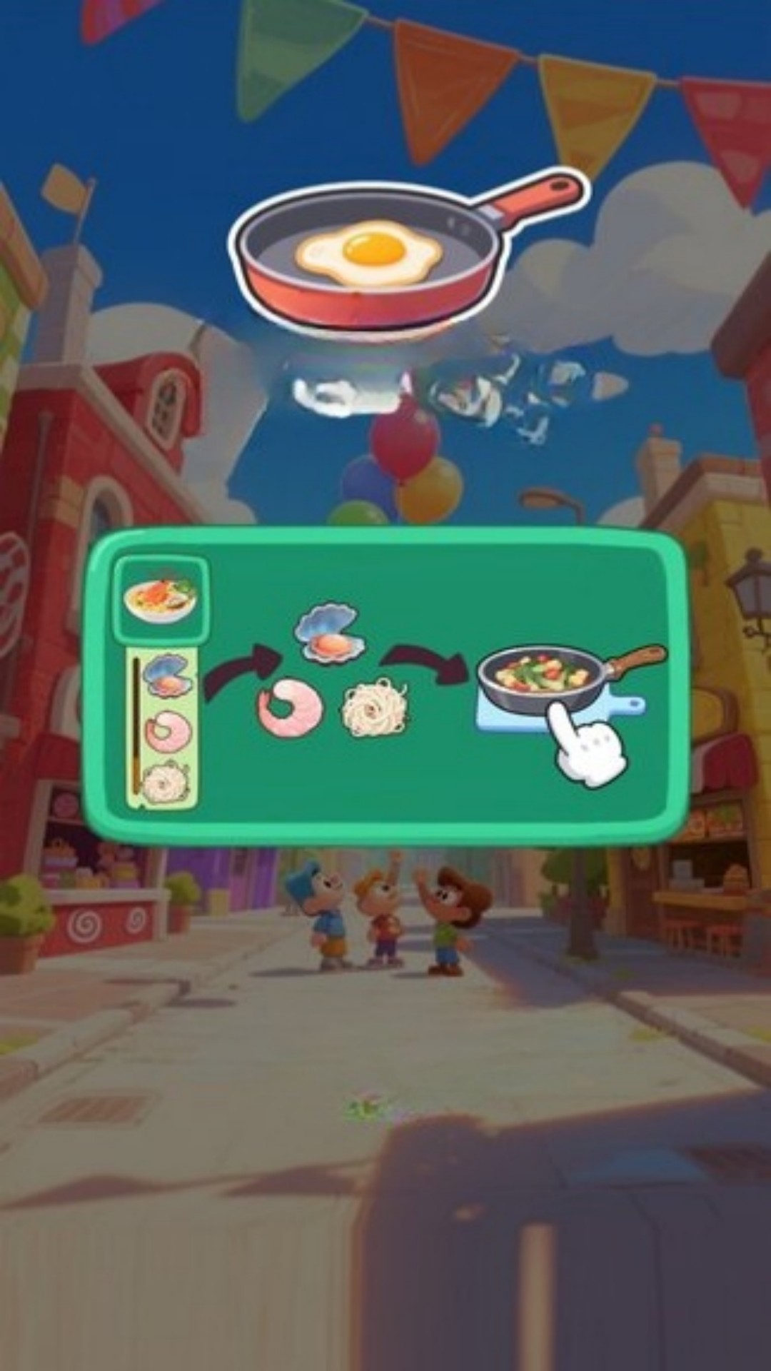 2、跟随引导熟悉食材点击与制作流程,完成首个简单订单,感受游戏节奏与操作逻辑。