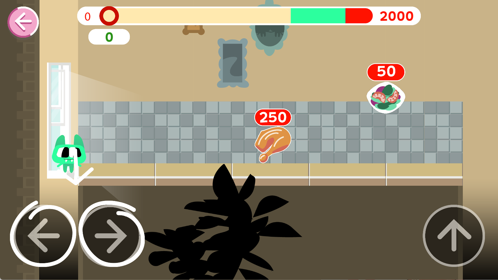 1、操控猫咪在三个不同世界的厨房场景中跳跃,跨越障碍推进游戏进程,解锁更多关卡与美食探索内容。