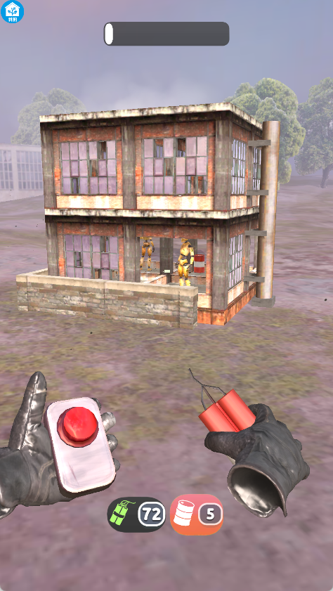 3、首局任务聚焦单层建筑,瞄准中间承重柱投2枚炸药,观察坍塌轨迹,掌握核心破坏逻辑。