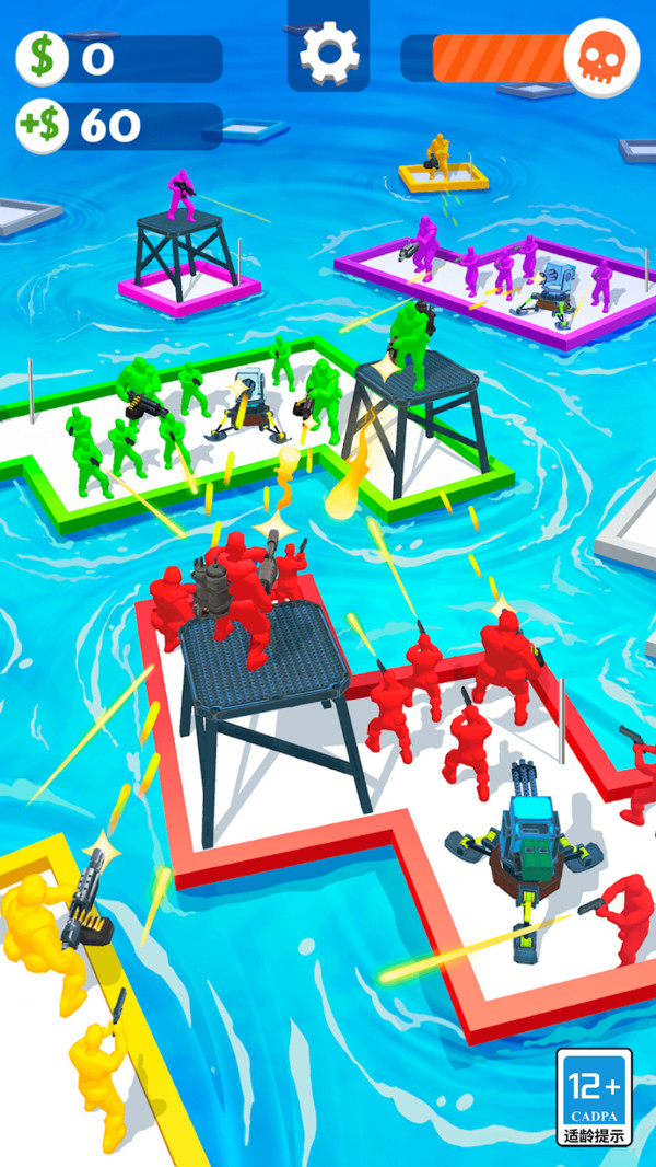 2、丰厚奖励,想要解锁更多的士兵人数可以观看广告,辅助大家更好的交战和对决。
