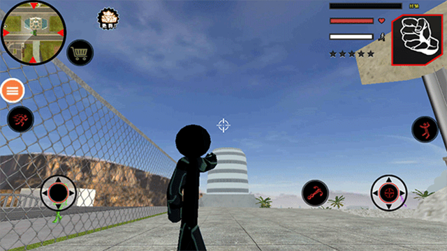 移动与操作:游戏操作界面简洁直观,左侧为虚拟摇杆控制火柴人移动,右侧有攻击、跳跃、使用道具等按钮,玩家还可滑动屏幕调整视角。火柴人拥有绳索飞荡技能,可在城市中快速移动,飞檐走壁,迅速到达犯罪现场。