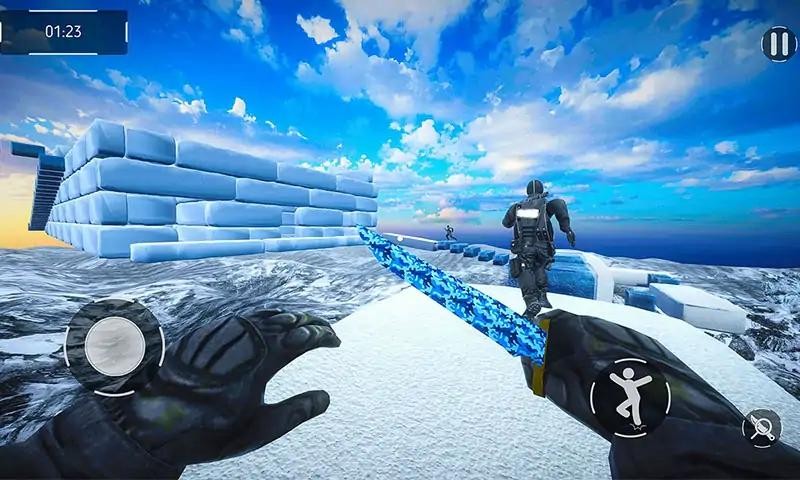 3、左下角摇杆控制角色移动方向,右下角按钮触发跳跃或攻击,瞄准敌人展开对决,同时规避赛道障碍。
