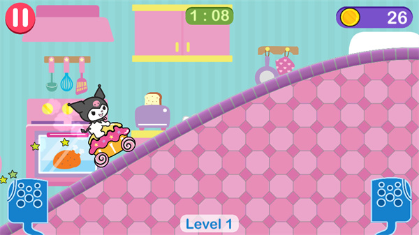 1、游戏画风温馨可爱,玩家需要操作凯蒂猫驾驶汽车完成每个关卡中的挑战;