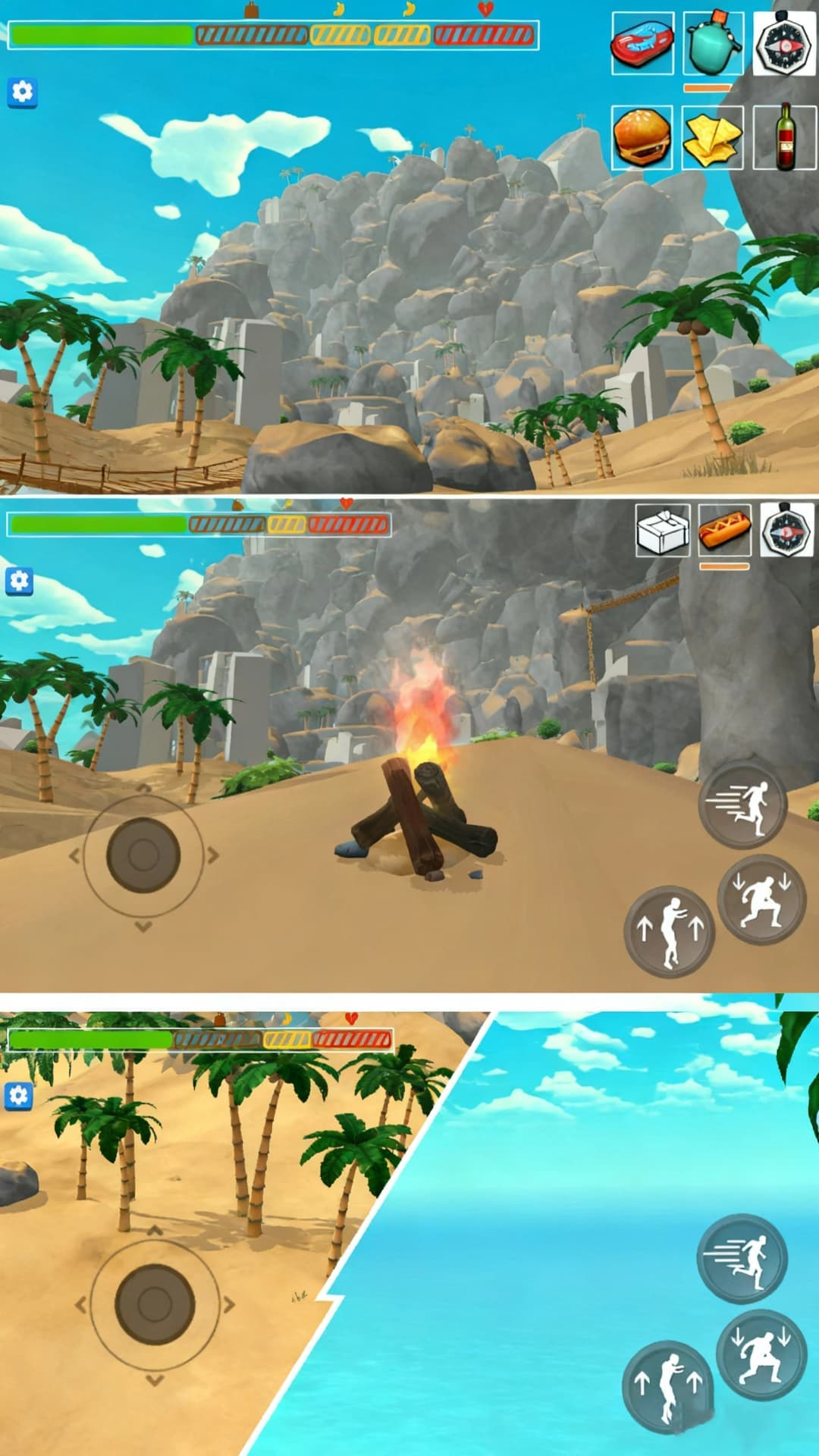 1.搜索散落于丛林、海岸线的食物、水源与医疗用品,合理分配物资以维持健康值,脱水或饥饿将直接影响行动能力。