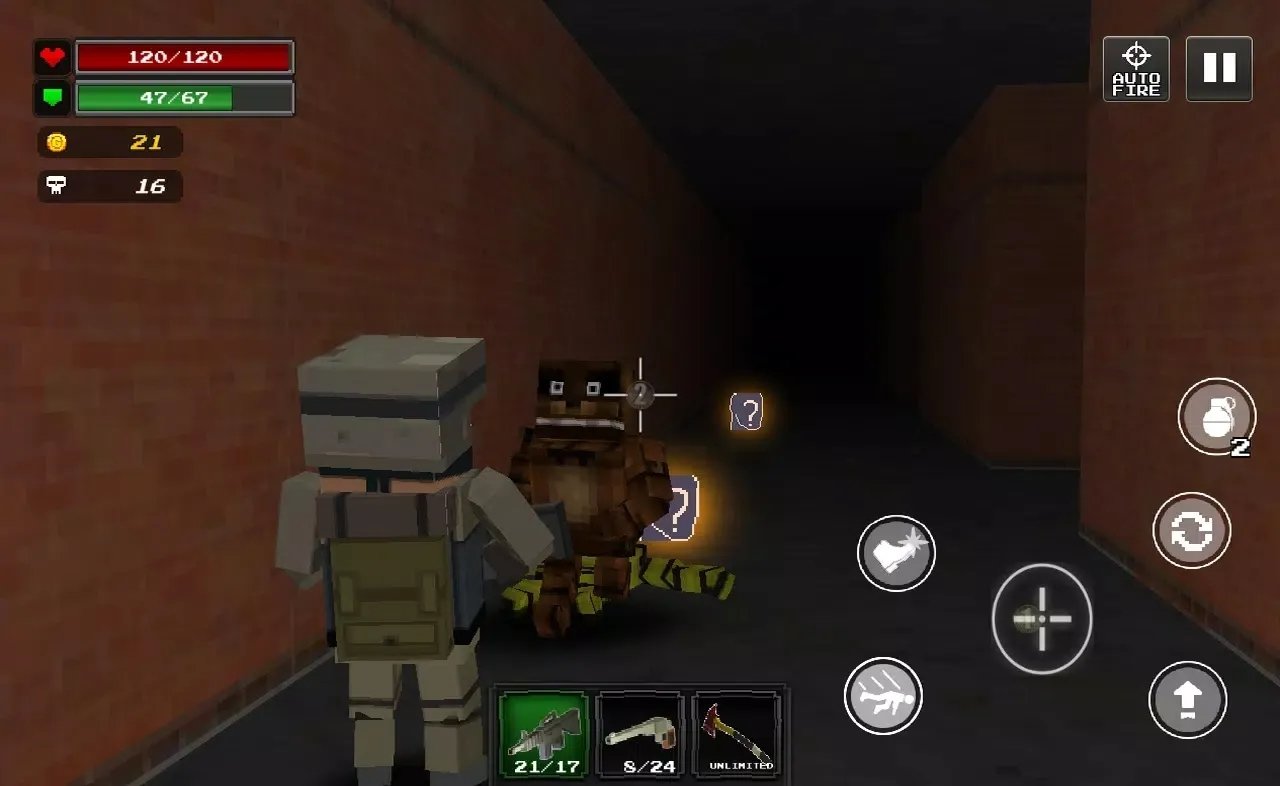 像素z世界采用了虚拟摇杆,玩家可以轻松的上手,进行各种走位和射击,还有辅助瞄准,让你轻松的爆头。