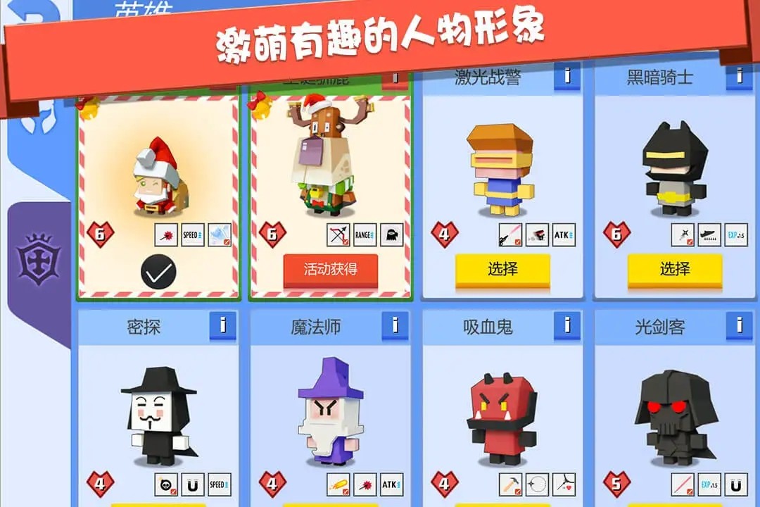 在刚进入游戏是会让玩家选择一个技能,可能出现的技能会有飞镖,火炮,激光,斧子和弓箭加强。
