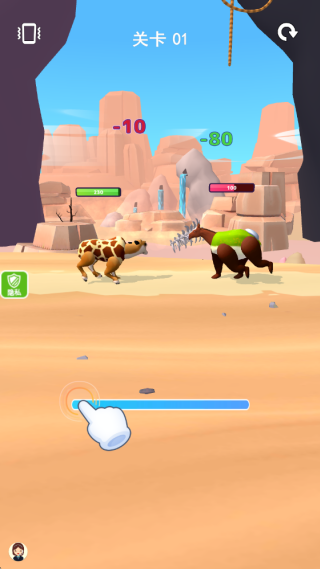 4.将对手击败即可闯关,随着闯关积累能够解锁更多动物肢体,从而组装出更多新的动物去战斗。