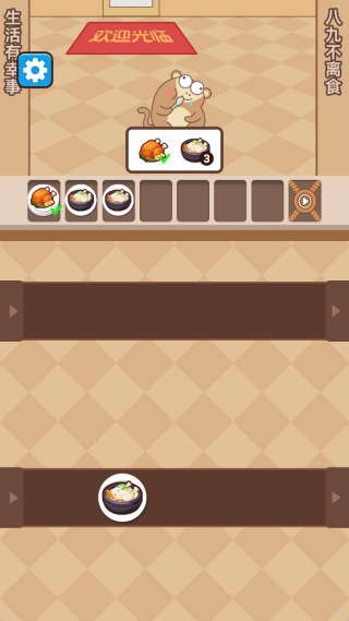 3、关卡难度循序渐进,从基础餐品组合到复杂点餐需求逐步升级,节奏把控合理,带来欢乐的消除体验。