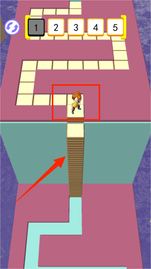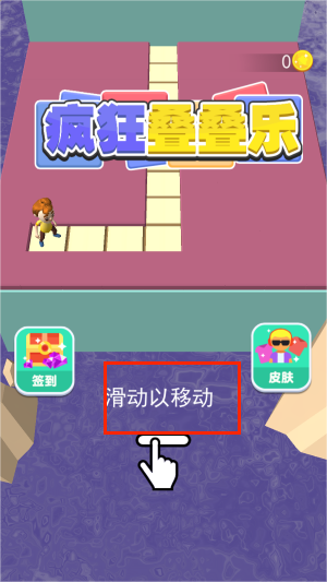 1、游戏启动后,向左滑动屏幕中央箭头开始挑战,熟悉点击拾取、堆叠方块的核心操作逻辑。