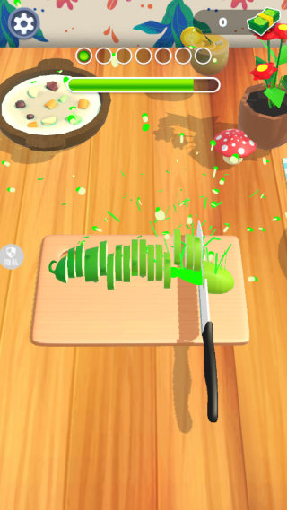 1、进入操作台后点击新鲜黄瓜,使用切片工具将其均匀切割成薄片备用。