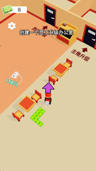 3、积累足够资金后,创建员工升级办公室与玩家升级办公室,提升员工效率和自身经营能力。